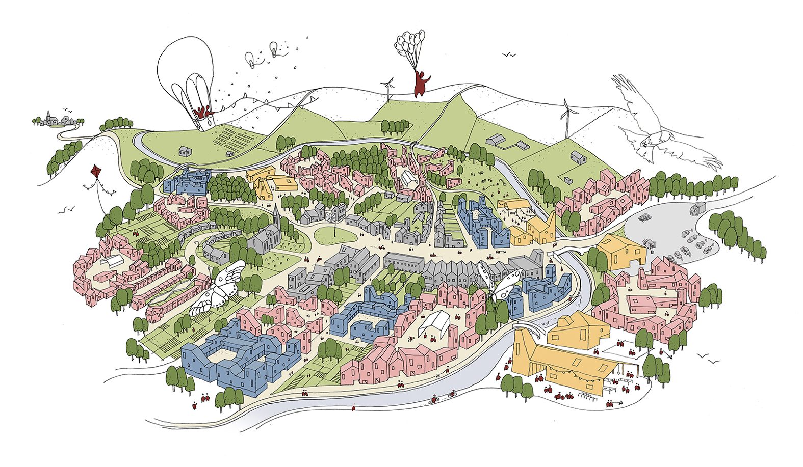 The village clusters are supported by the necessary social, environmental and economic infrastructure to enable them to operate in a sustainable manner within their environmental limits. Cycling as the mainstream form of movement will shape the way places are planned and the way people communicate and relate to one another, forming resilient, intergenerational communities and a strong identity for this progressive region.